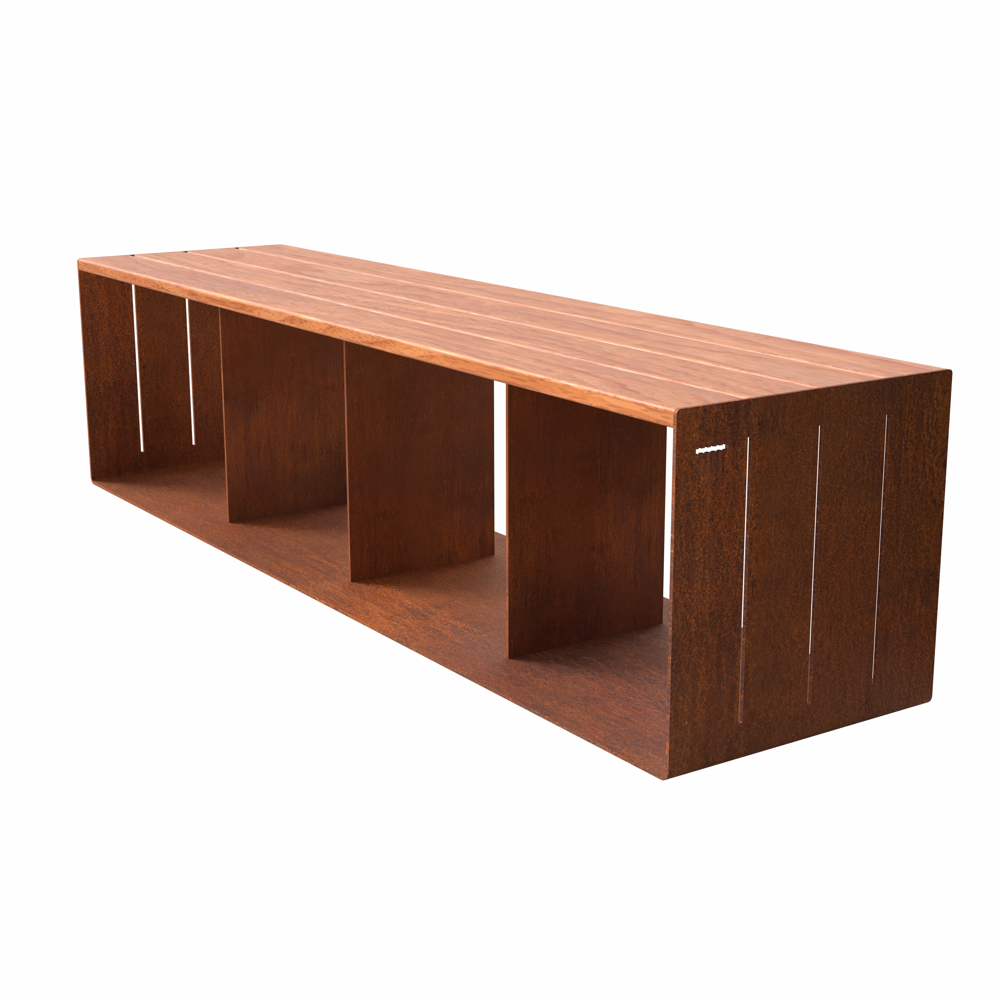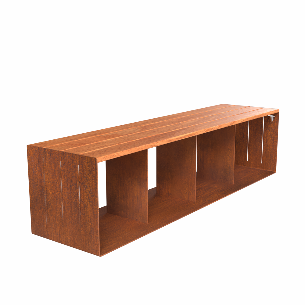Lavice z Corten oceli o rozměru 160/40/40 cm je vhodným doplňkem k ohništi či venkovnímu krbu. Prostor pod sedákem je možné využít na uskladnění dřeva. Sedák lavičky je vyroben z akátového dřeva, které je velmi houževnaté, pružné a odolné vůči povětrnostním vlivům. Spojení povětrnostně odolné oceli a prken z Akátu tak utváří zahradní nábytek, který Vám vydrží skutečně dlouho.