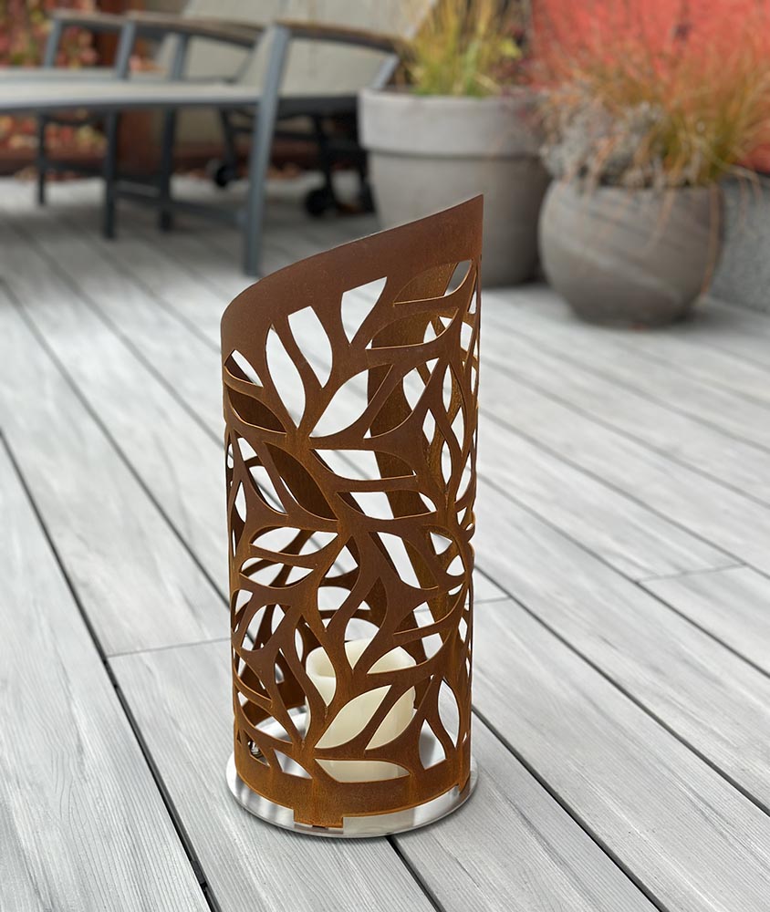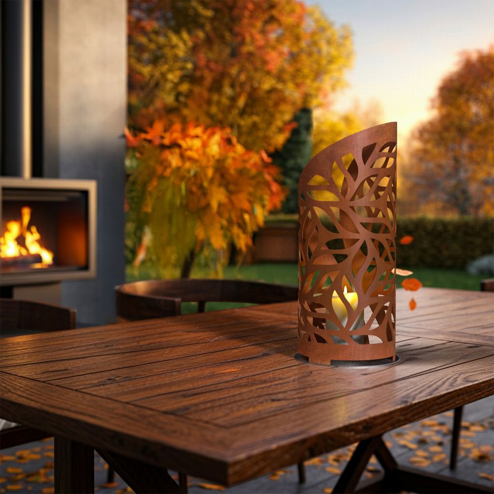 Cortenový svícen s designem lístečků – spojení elegance a odolnosti